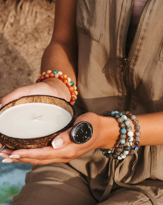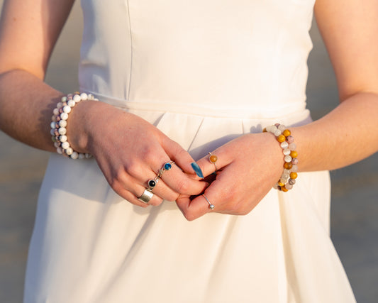 Chalcedony Mala bracelet stack