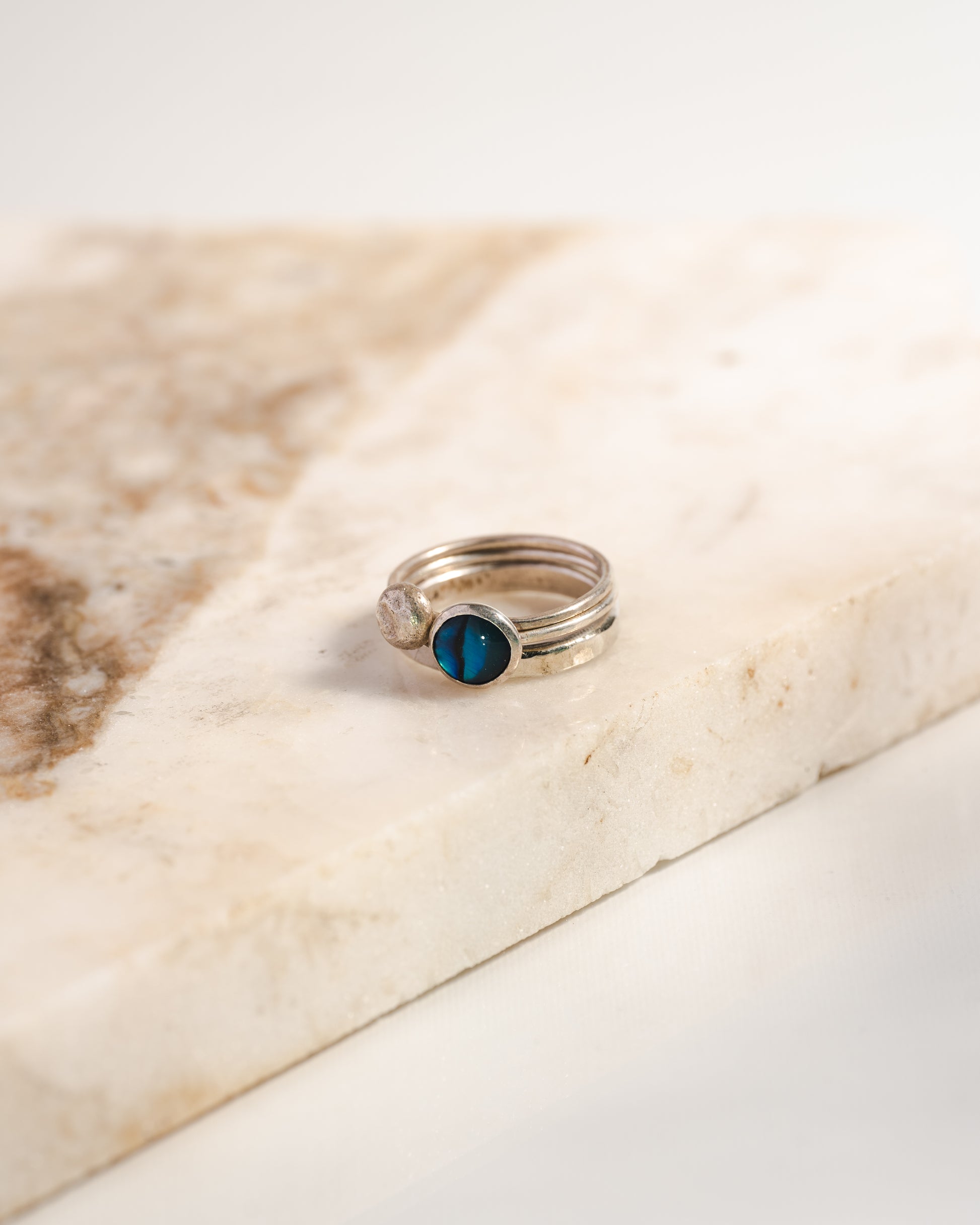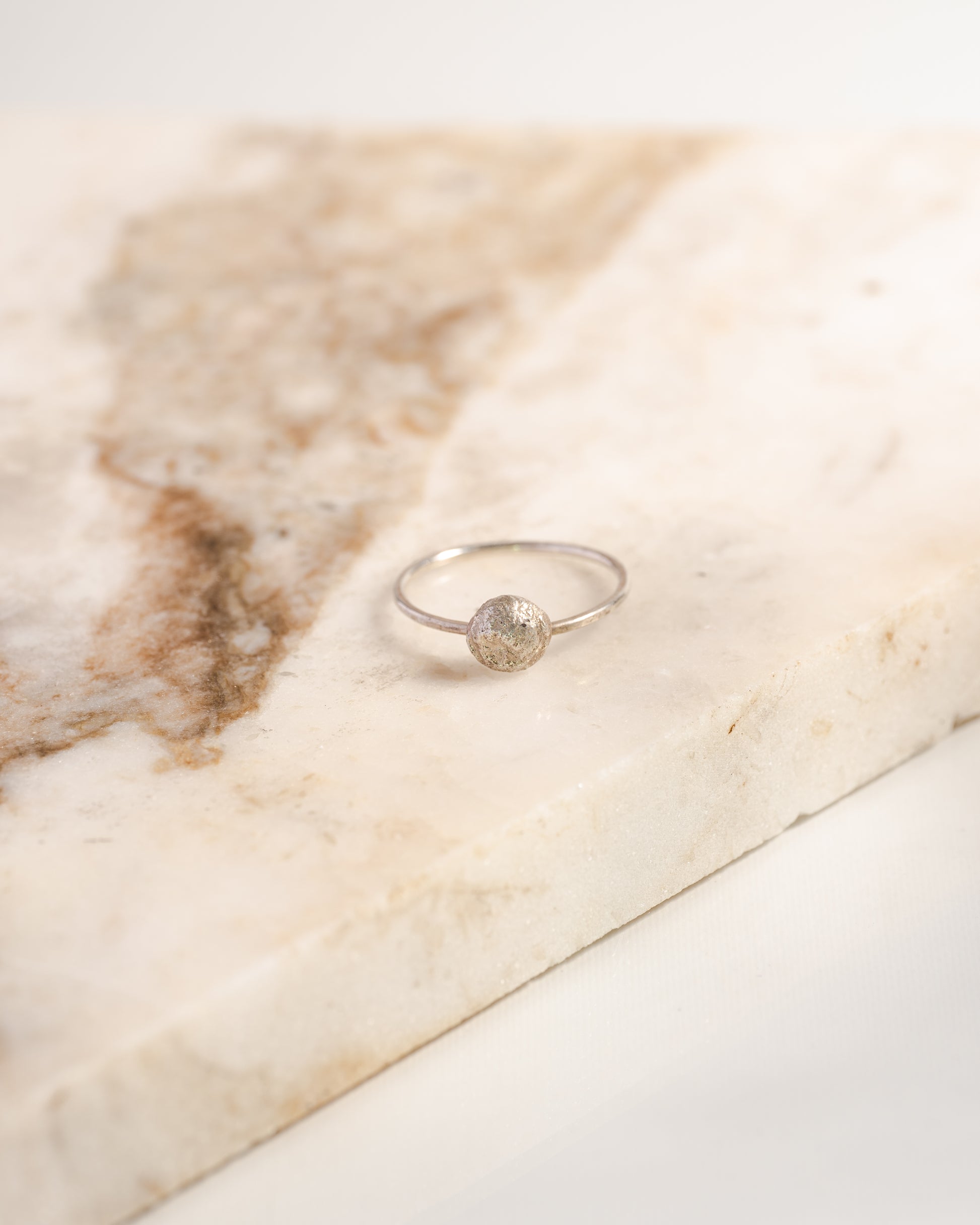 Made from recycled scrap silver, these little gems shine and add a little pop of texture to any ring stack, or shine on their own
