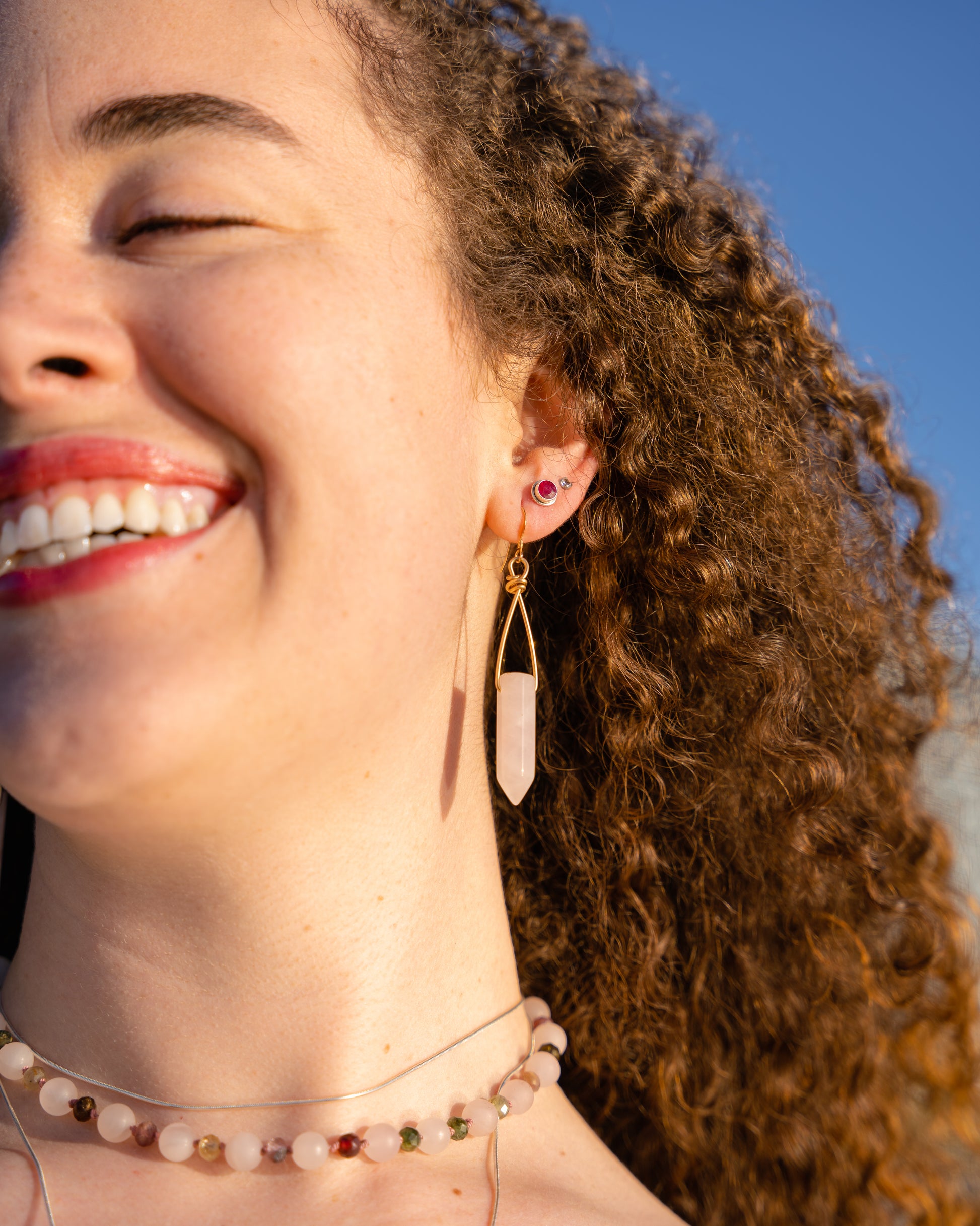 Experience the gentle embrace of love and compassion with our Rose Quartz Tower Earrings in 14K Gold Fill. Designed for those who appreciate the power of self-love and inner harmony, these earrings radiate a soothing energy that resonates with the heart chakra. Adorn yourself with the symbol of divine love and embrace a life filled with compassion, grace, and emotional healing.