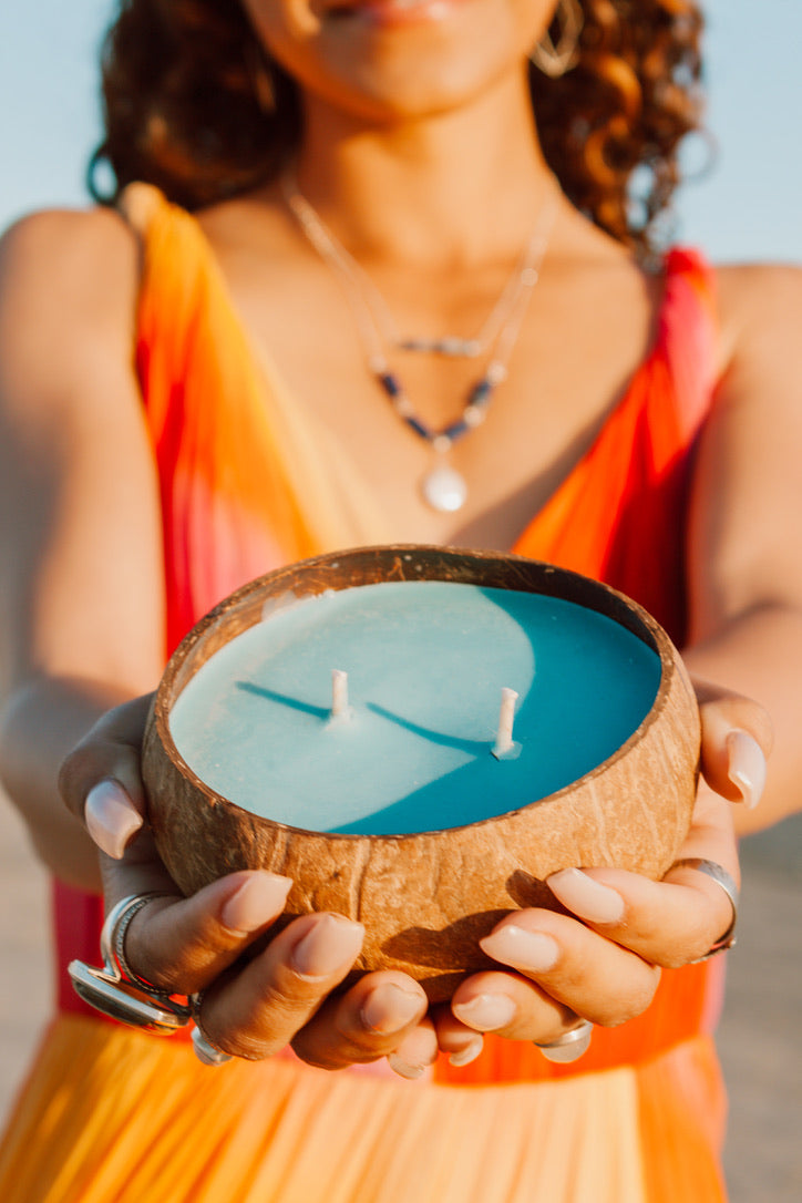 Coco Candle | Calm Waters- hand poured soy and coconut wax candle in a reusable natural coconut shell