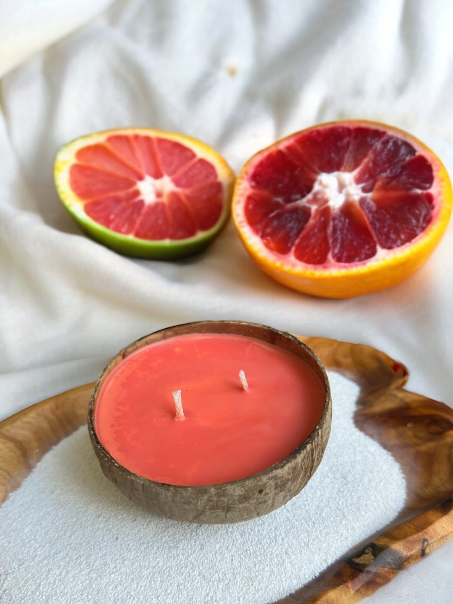 Awaken the senses and clear the mind- this bright fragrance embodies citrus. Top notes of grapefruit, orange and bergamot essential oils create a succulent blend of crisp and sweet that is oh so delicious! And a floral and green middle add a soothing touch to this true to life fragrance.