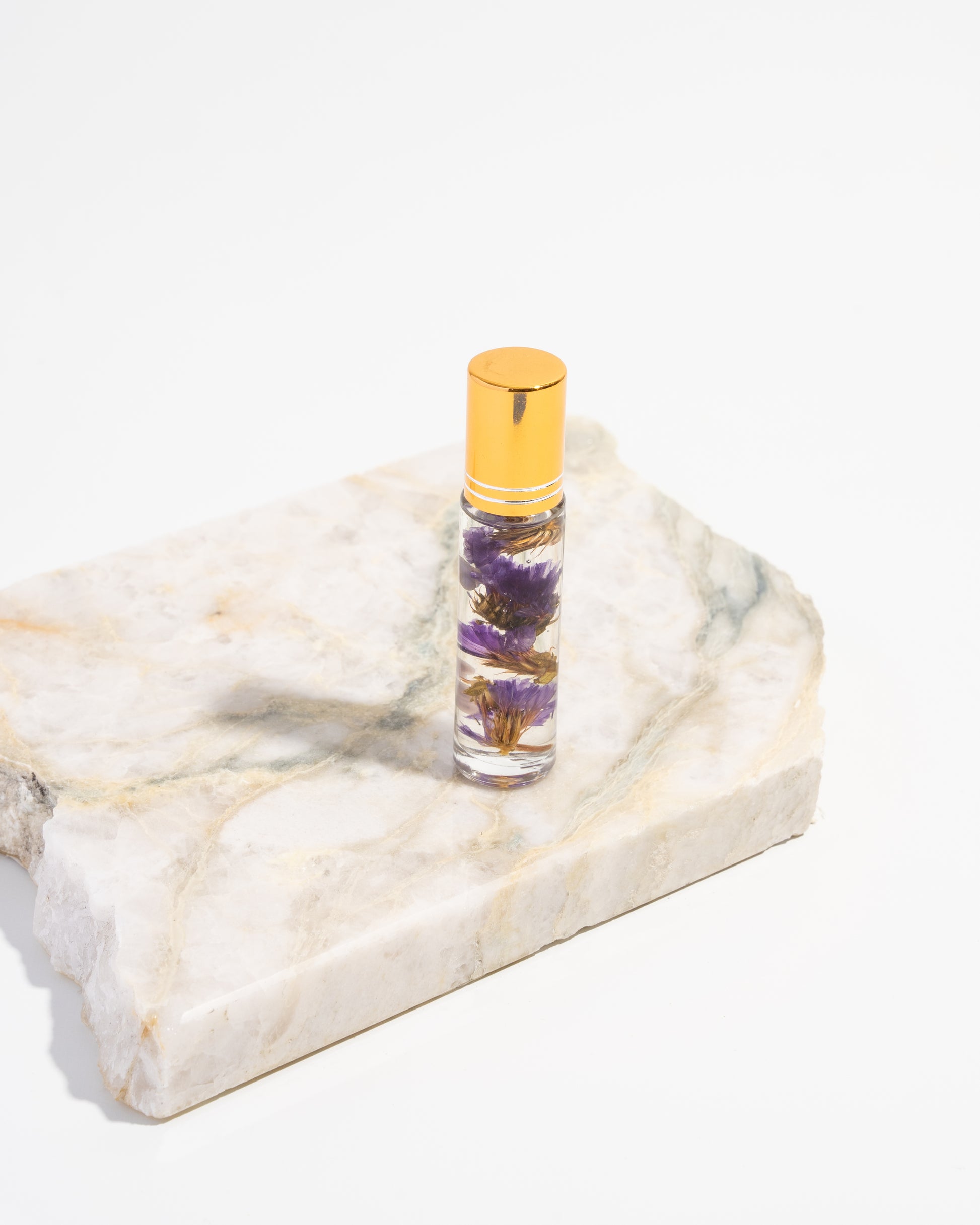 Enjoy the gorgeous aromas and visual stimulation carried in a moisturizing blend of fractionated coconut oil and local, dried flowers