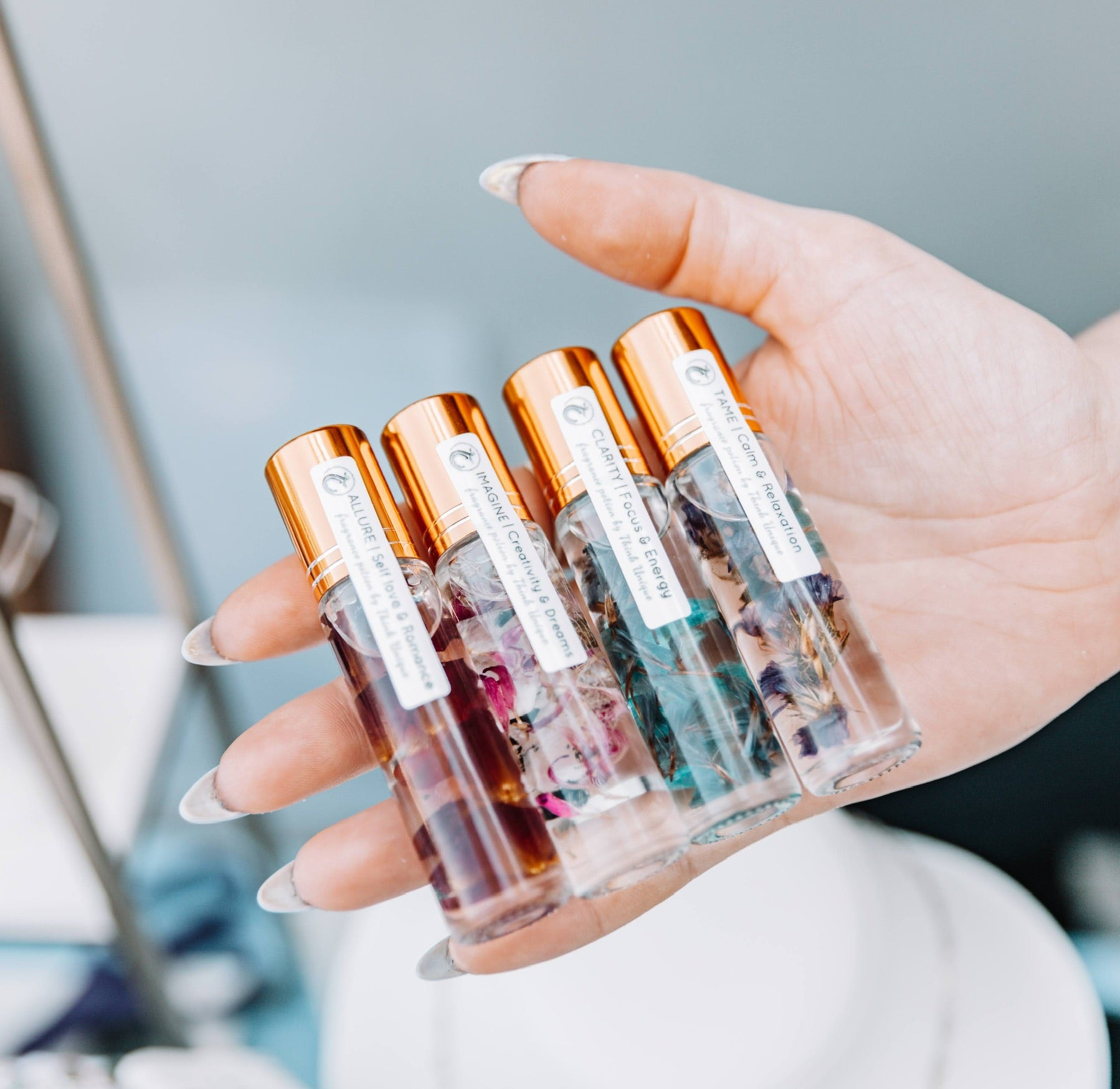 Fragrance potion gift set- All four of our floral and crystal oil roller perfumes!