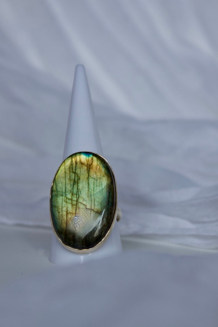 Labradorite ring (oval shape), size 10.5 | Manifestation and Higher Consciousness