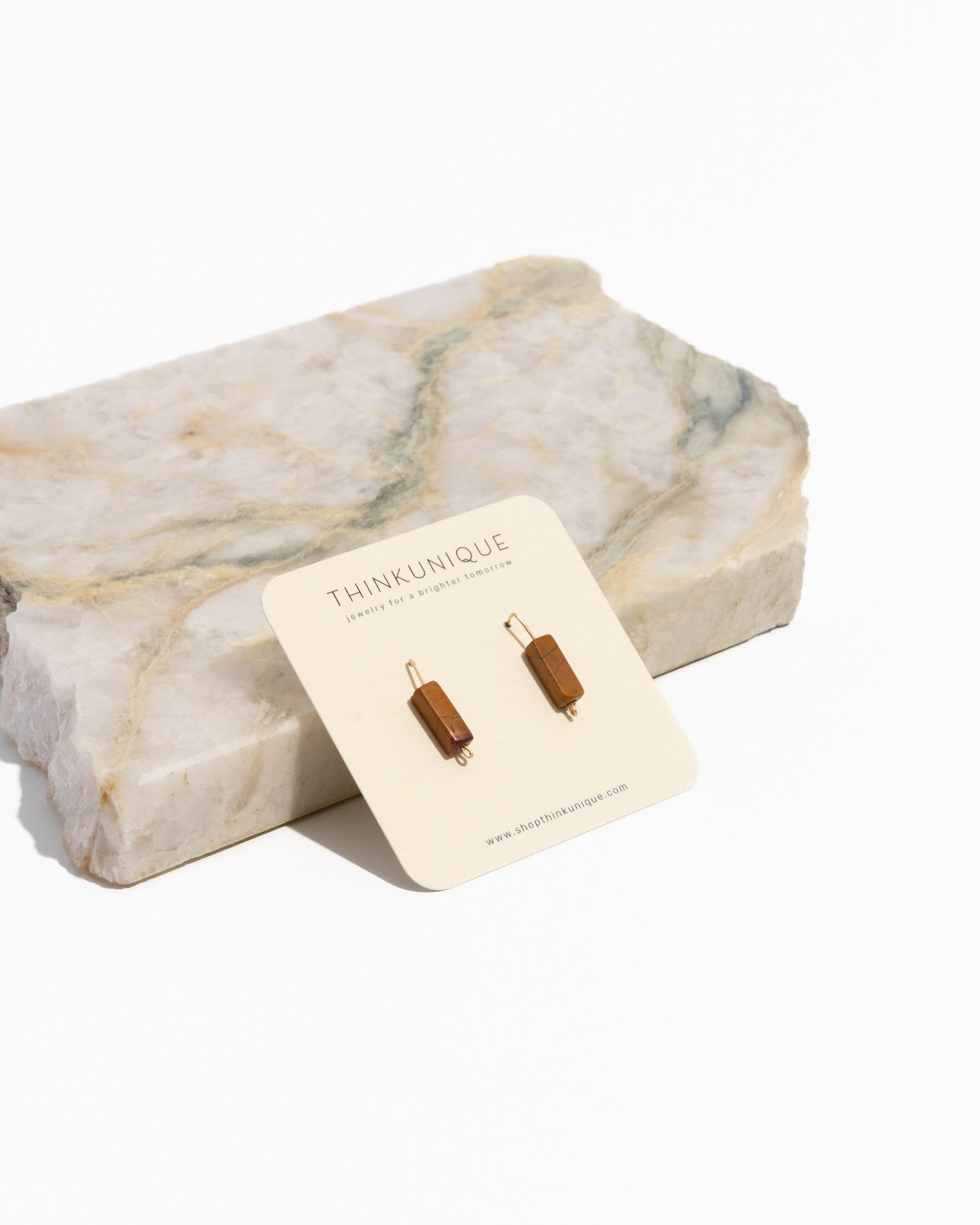 Design: Sleek, minimalist threader style with geometric Red Creek Jasper stones for a modern, sophisticated look.
