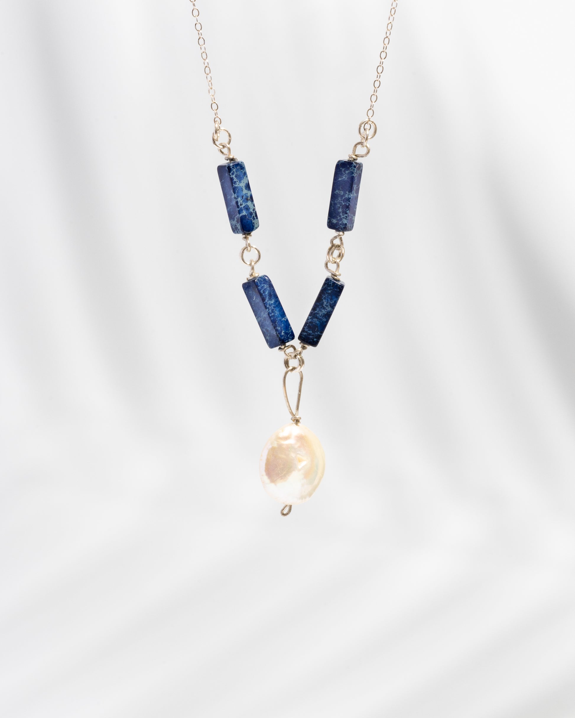Ocean Goddess Necklace | Blue Sea Sediment Jasper & Pearl