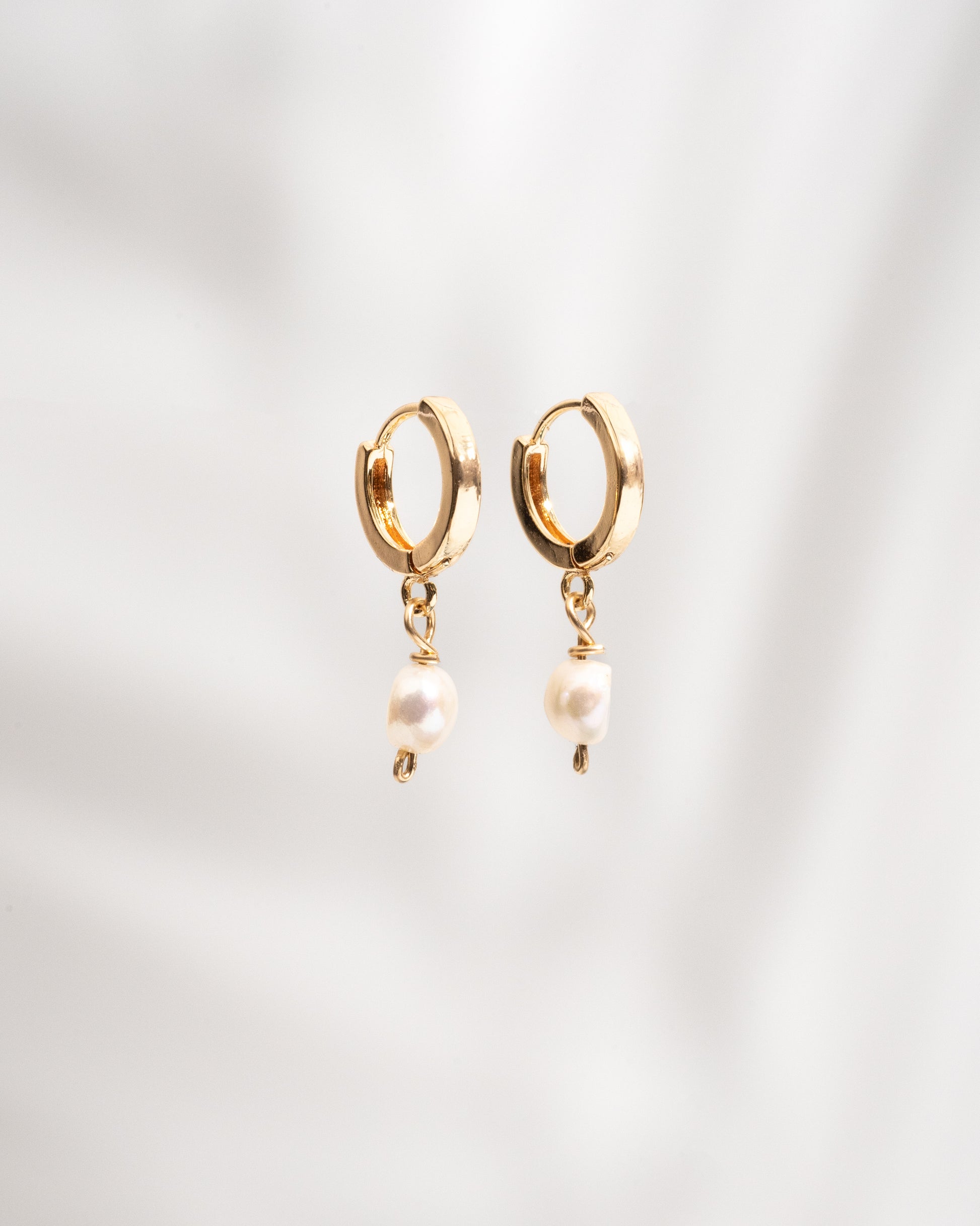 Oceana Earrings- Mini Freshwater Pearl Golden Huggie Earrings