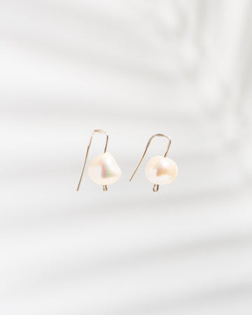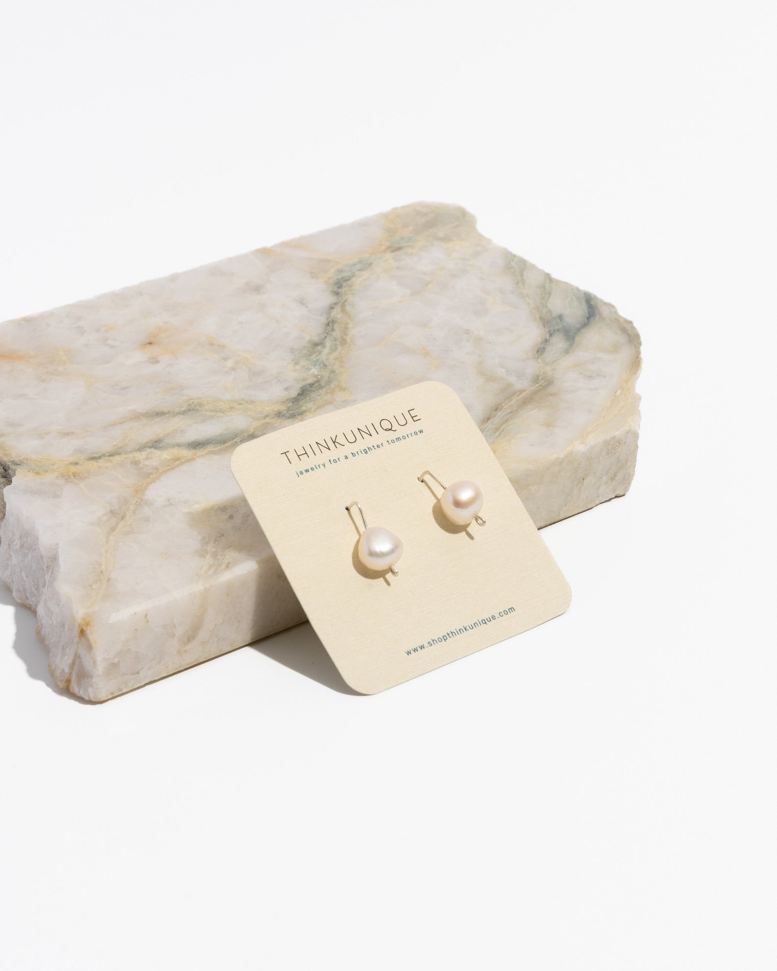 Pearl Round Threader Earrings | Freshwater Pearl Earrings in multiple metals