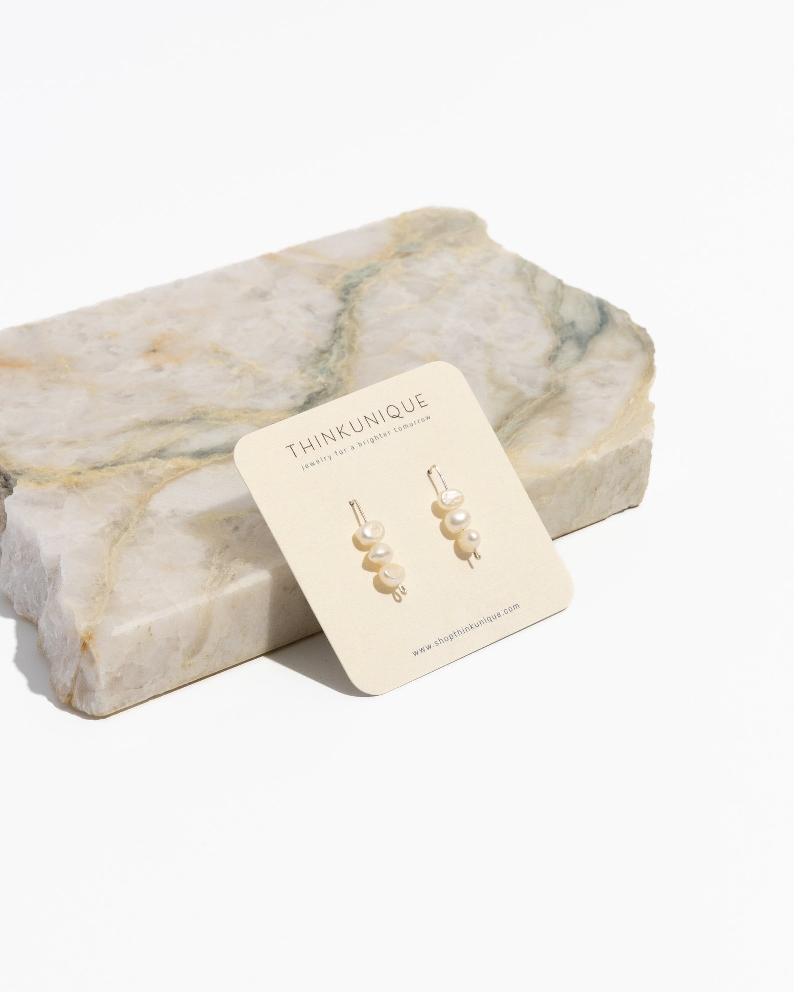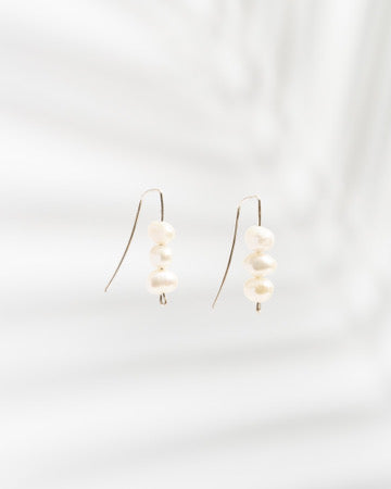 Pearl Trio Threader Earrings | Freshwater Pearl Earrings in multiple metals