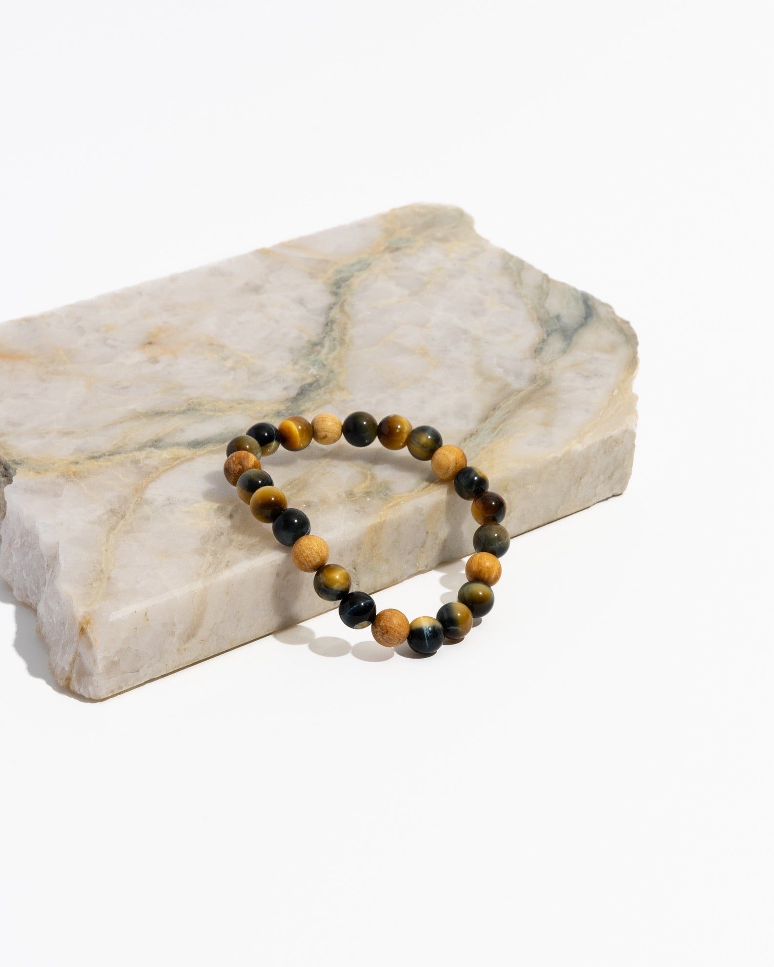 Rare Blue gold Tiger's Eye & Palo Santo Mala bracelet | repel negative energy and attract confidence