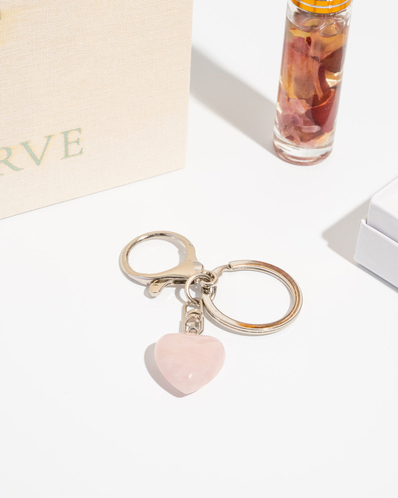 Rose Quartz Heart Keychain or Gemstone - Rose Quartz is known as the stone of unconditional love, promoting emotional healing, self-compassion, and heart chakra activation. Carry this symbol of love wherever you go. (Choice based on availability)