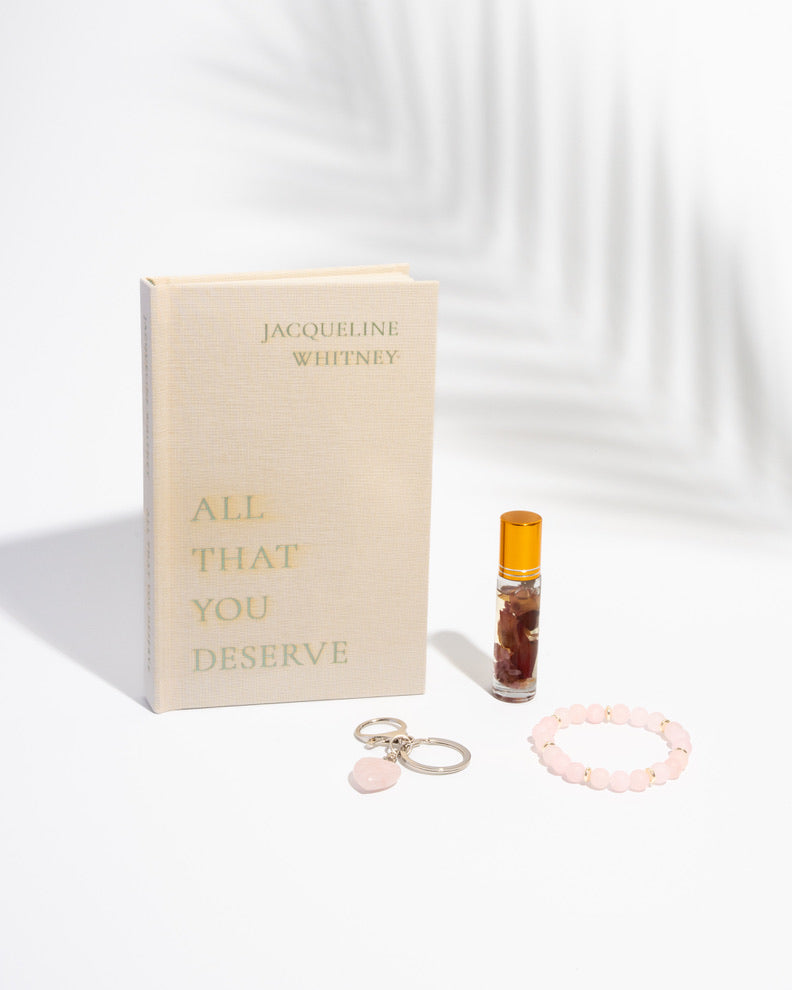 Self-Love & Romance Gift Set | Self-Love Poetry Book, Rose Quartz Heart, Allure Fragrance, & Mala Bracelet