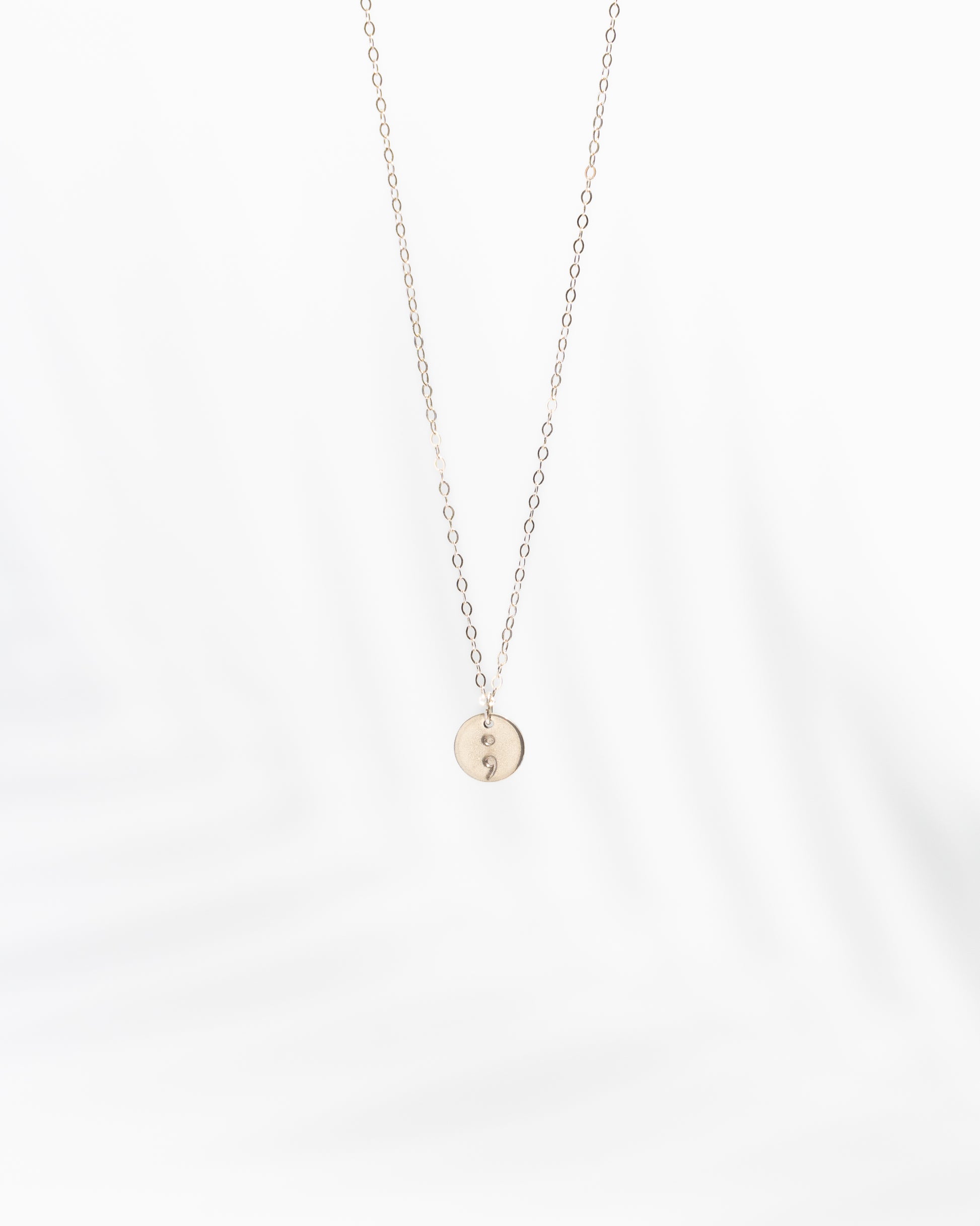 The Semicolon Necklace is a powerful symbol of strength, resilience, and the ongoing journey of healing. Representing mental health awareness and the fight against suicide, the semicolon signifies that your story is not over. It's a reminder to keep going, no matter how difficult things may seem.