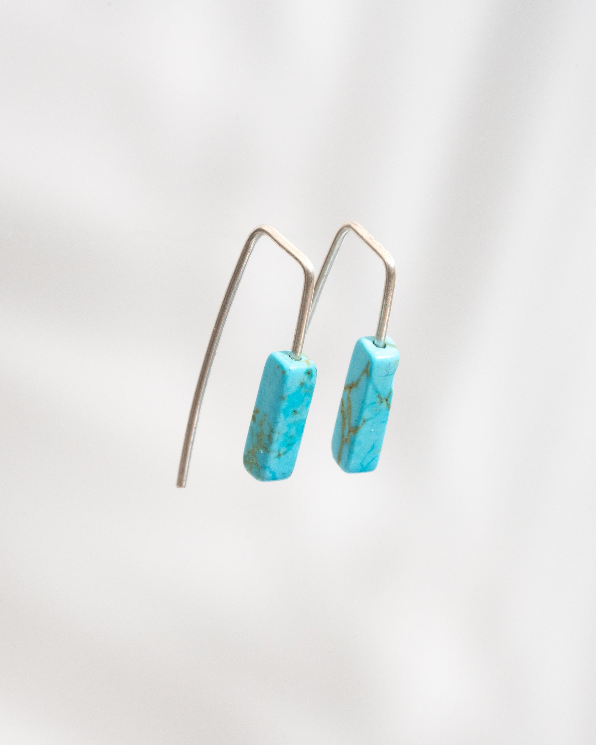 Design: Minimalist threader style with geometric Turquoise stones for a modern, earthy touch.