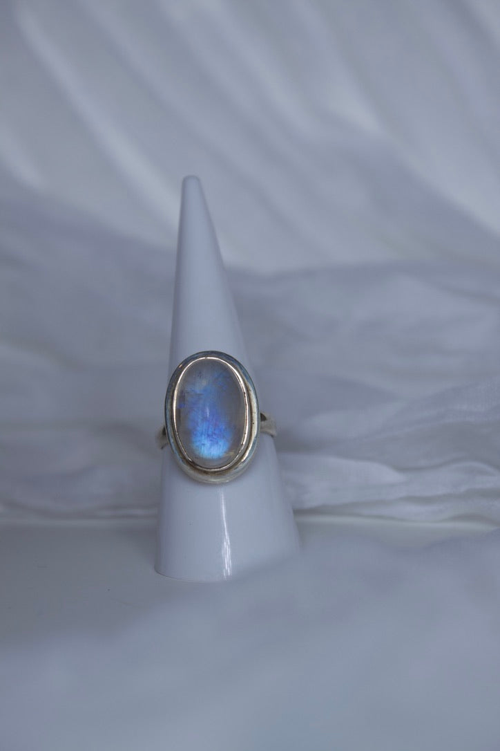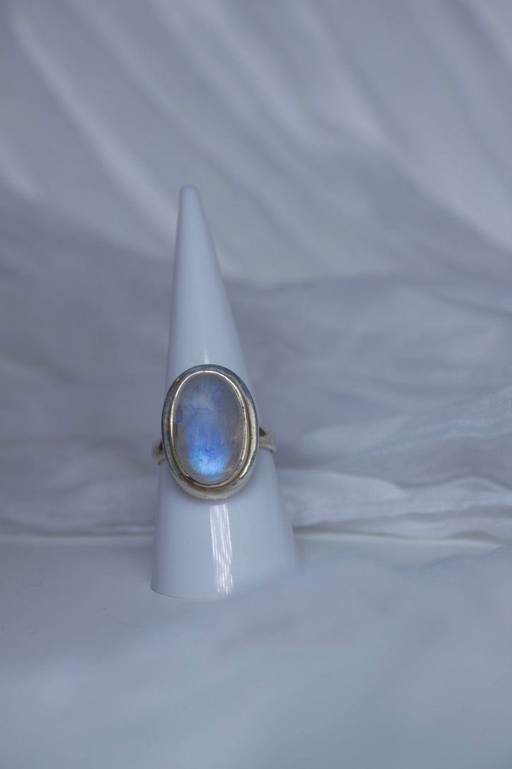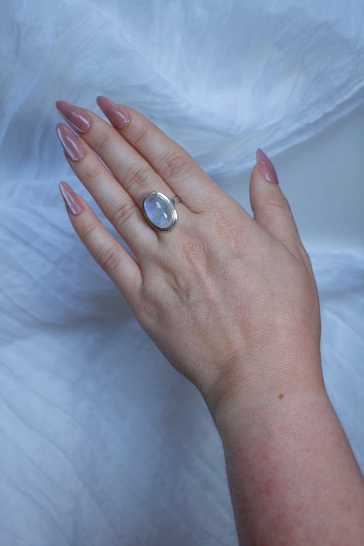 Sterling Silver Moonstone Ring (Oval Shape), size 7.25 | for feminine energy and healing