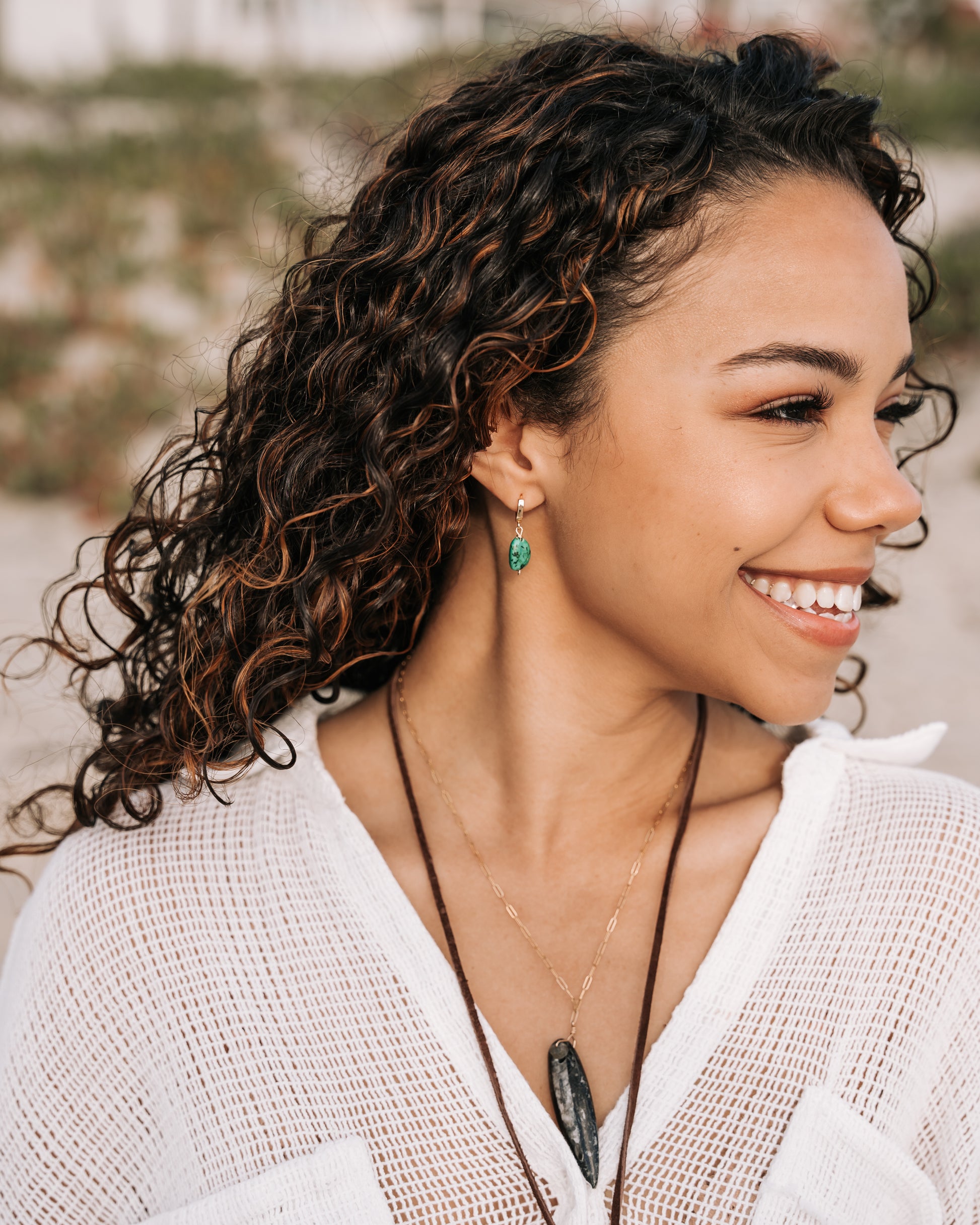 - Comfortable Huggie Style: The huggie style of these earrings offers a snug and secure fit, allowing you to wear them with ease throughout the day. The 14K gold fill hoops elegantly hug your earlobes, while the vibrant turquoise gemstones add a pop of color and radiance. Experience the perfect balance of comfort and style, and effortlessly elevate your everyday look.