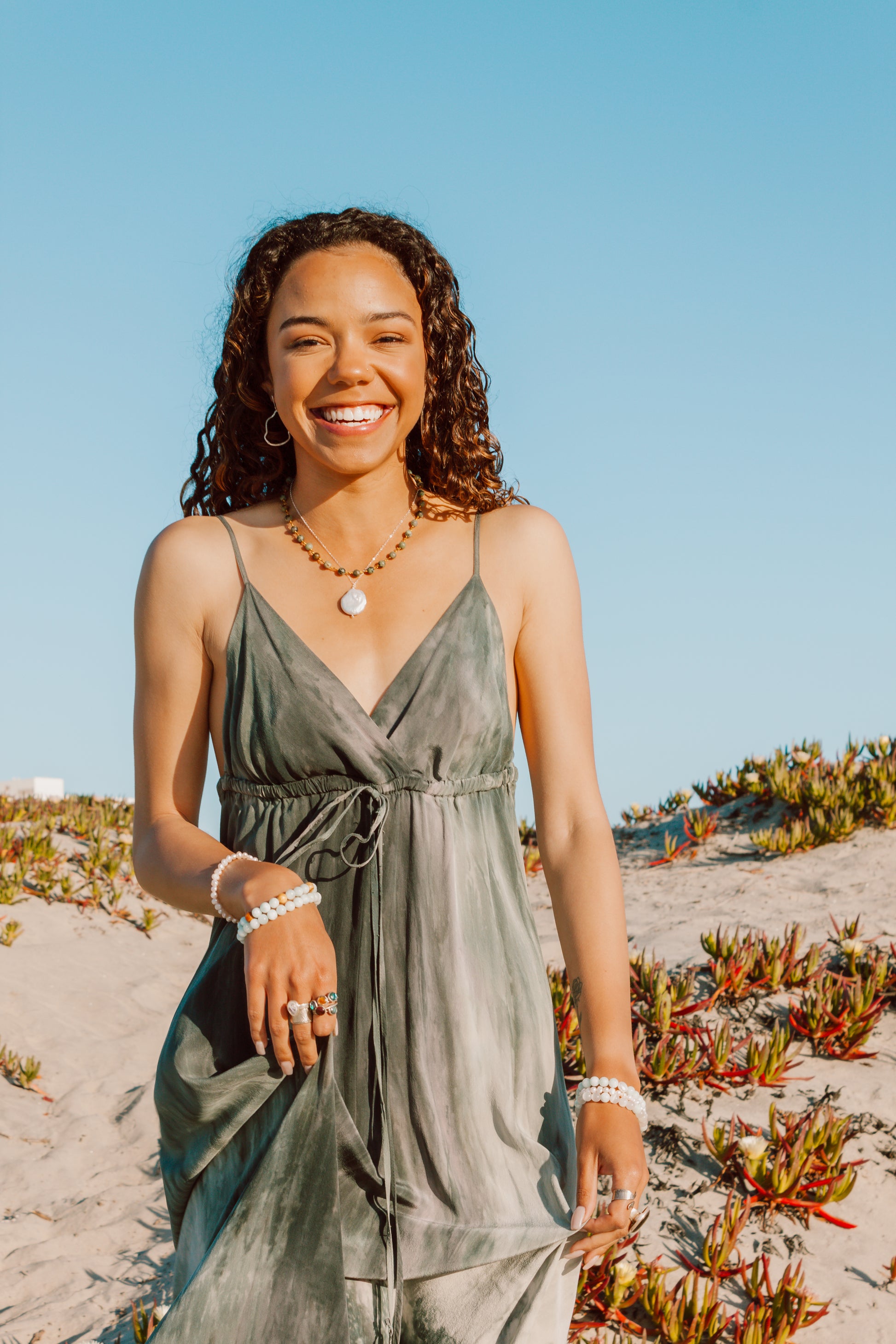 • Gray Freshwater Pearl: The Gray Freshwater Pearl in this necklace offers a myriad of benefits. Known for their connection to purity, femininity, and emotion balancing properties, it makes it the perfect necklace to help create a more secure sense of self. The pearlescent gray appearance evokes feelings of beauty, making it a cherished gemstone for anyone who wants to bring a healing and timeless piece of jewelry to their life.
