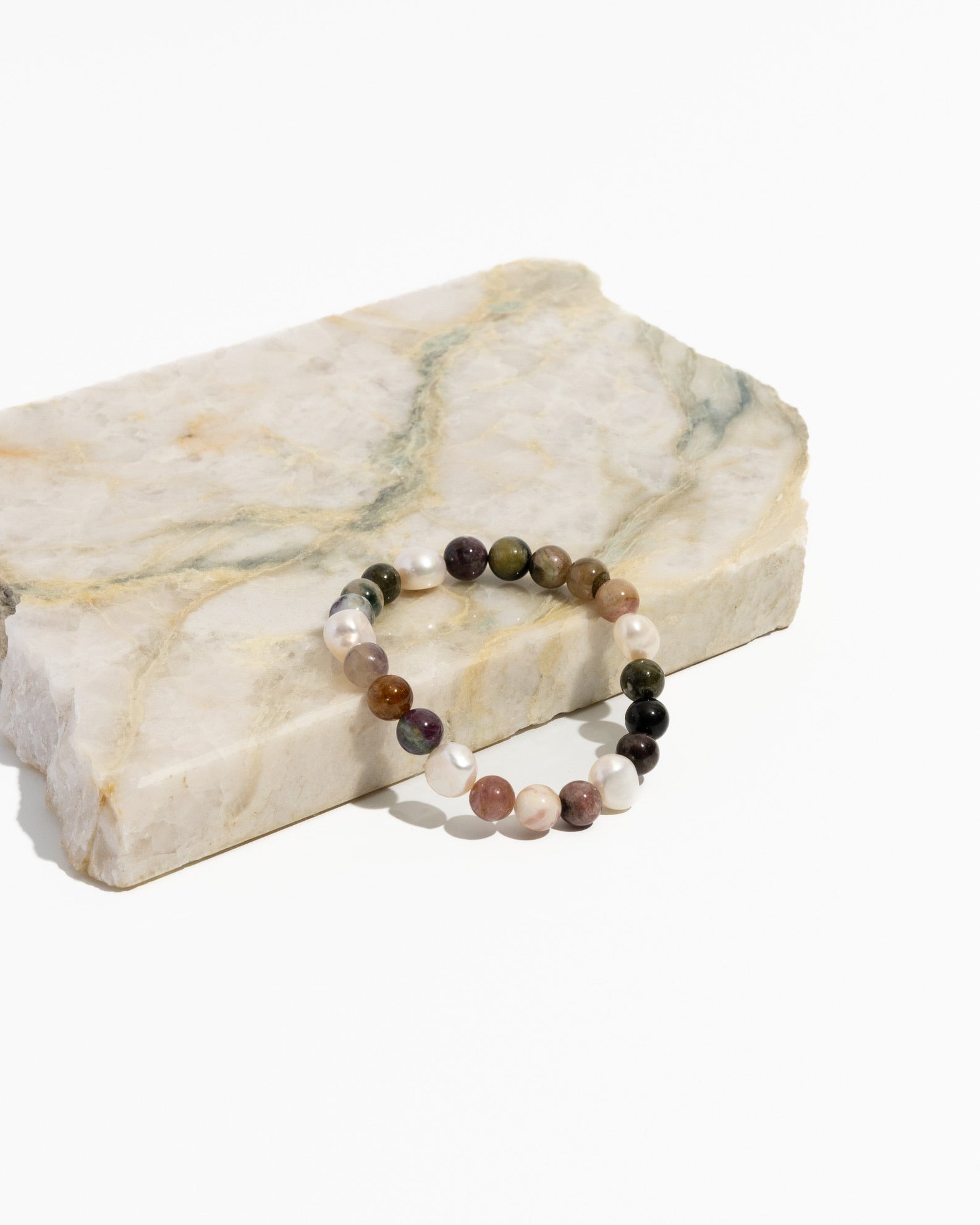 Watermelon Tourmaline Mala Bracelet with pearls | Deeper consciousness and a creative boost